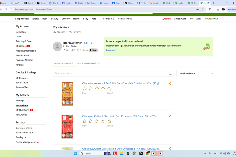 iHerb te regala $1 dólar de crédito por cada reseña que escribas de los productos que compraste.